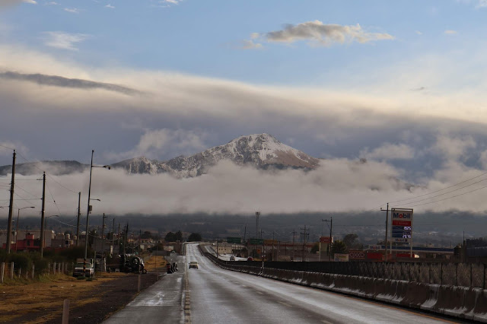 El ambiente frío y las lluvias han predominado las últimas 48 horas, debido a la presencia del frente frío número 32 que ha vestido de blanco la cima del volcán Malinche y algunas intersecciones en la parte central a baja del Parque Nacional.